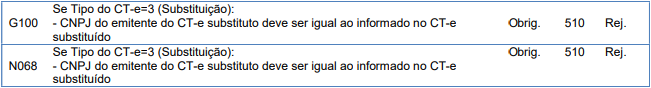 Rejeição 510: CNPJ do emitente do CT-e substituto deve ser igual ao informado no CT-e substituído (CT-e)