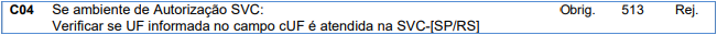 Essa rejeição ocorre quando a UF não é atendida pela SVC-[SP/RS].