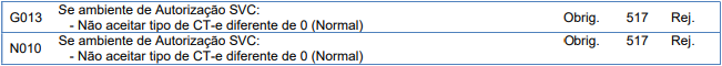 Rejeição 517: CT-e informado em SVC deve ser Normal (CT-e)