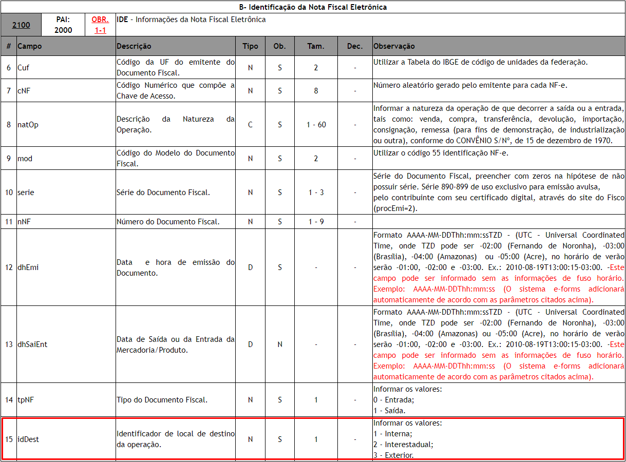 Para clientes que emitem o arquivo em TXT o campo idDest é referente a linha 2100 no 11º campo, conforme podemos visualizar abaixo nos manuais da NDD Tech.