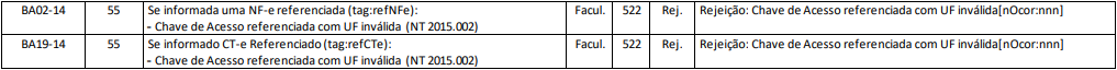 Rejeição 522: Chave de Acesso referenciada com UF inválida (NF-e)