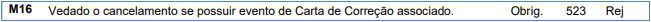 Essa rejeição ocorre quando é Vedado o cancelamento quando existir evento Carta de Correção.