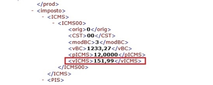 vBC X pICMS = vICMS