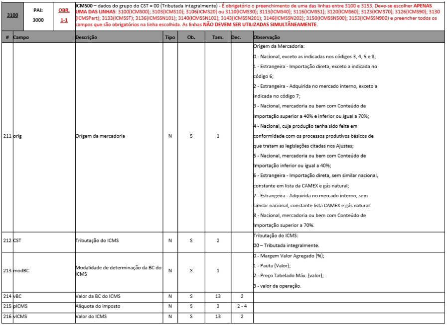 Fonte: ------> Anexo I - Leiaute e Regra de Validação - NF-e e NFC-e