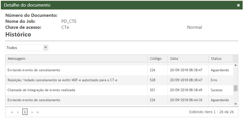 Rejeição 528: Vedado cancelamento se exitir MDF-e autorizado para o CT-e (CT-e)