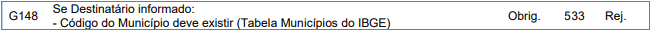 Essa rejeição ocorre quando o Município do Destinatário informado é inexistente.
