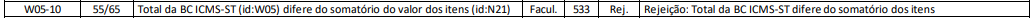 Rejeição 533: Total da BC ICMS-ST difere do somatório dos itens (NFC-e)