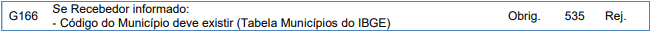 Rejeição 535: Município do Recebedor inexistente (CT-e)