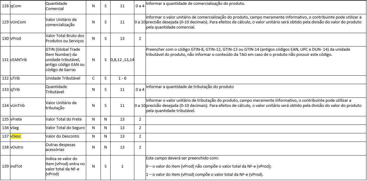 Fonte: ------> Anexo I - Leiaute e Regra de Validação - NF-e e NFC-e