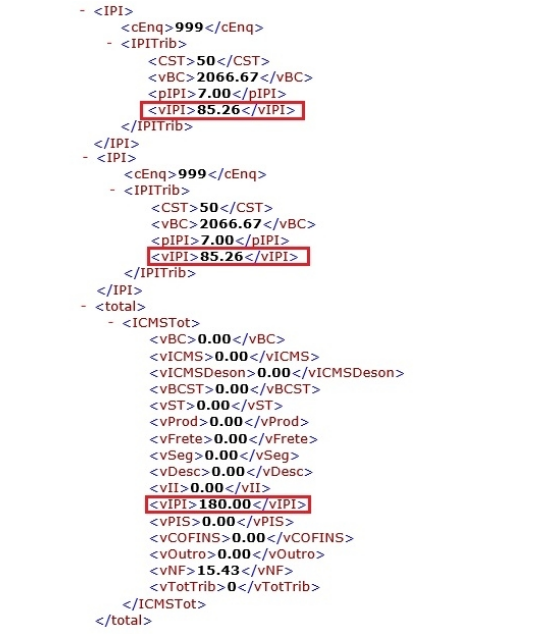 vIPI [Item 1] + vIPI [Item 2] + vIPI [Item n] = vIPI [Total]