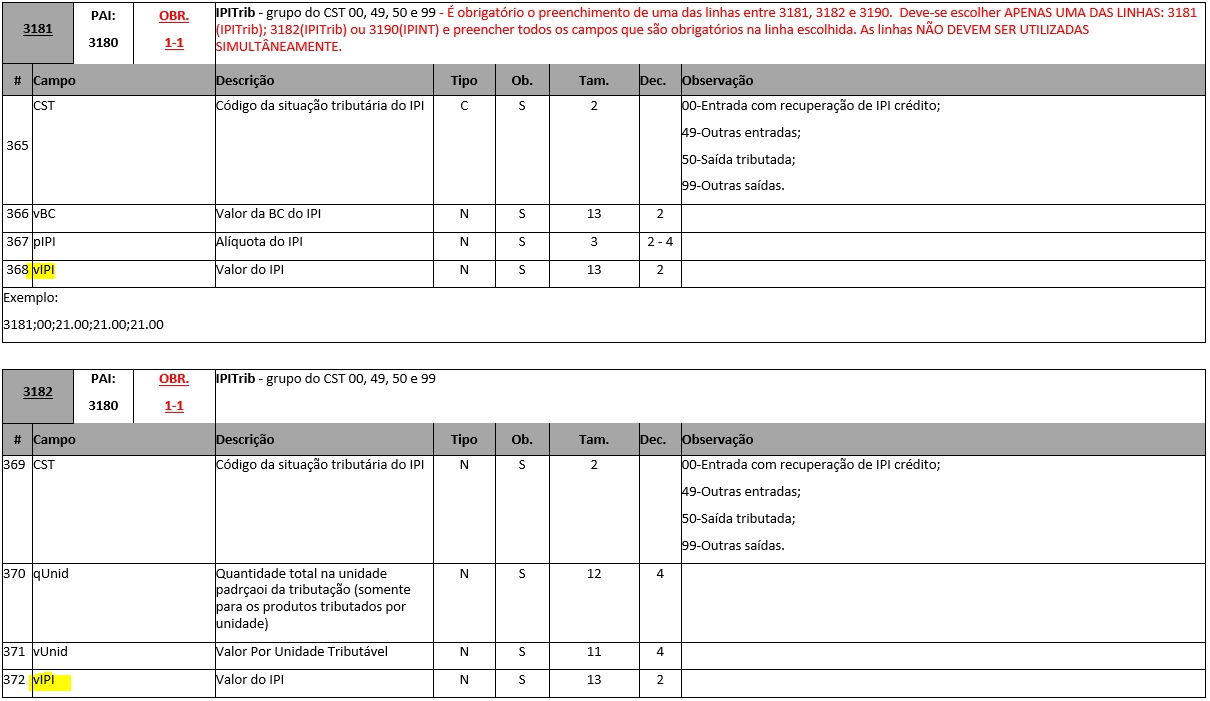 Para clientes que emitem o arquivo em TXT o campo vIPI está localizado na linha 3181 ou 3182, conforme podemos visualizar abaixo nos manuais da NDD Tech.