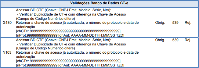 Rejeição 539: Duplicidade de CT-e, com diferença na Chave de Acesso (CT-e)