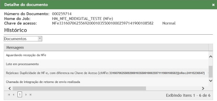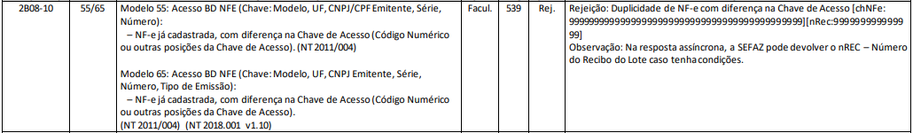 Rejeição 539: Duplicidade de NF-e, com diferença na Chave de Acesso (NF-e)
