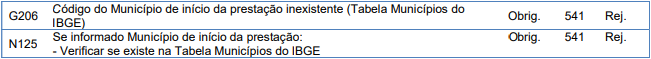 Essa rejeição ocorre quando for informado o Município de início da prestação inexistente.