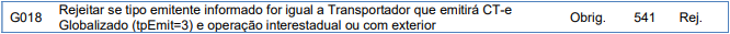 Verificar pois irá rejeitar se tipo emitente informado for igual a Transportador que emitirá CT-e Globalizado (tpEmit=3) e operação interestadual ou com exterior.