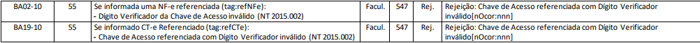Rejeição 547: Chave de Acesso referenciada com Dígito Verificador inválido (NF-e)