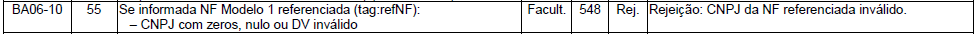 Rejeição 548: CNPJ da NF referenciada inválido (NF-e)