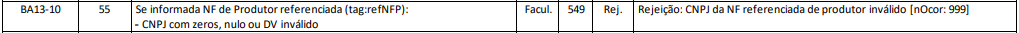 Rejeição 549: CNPJ da NF referenciada de produtor inválido (NF-e)