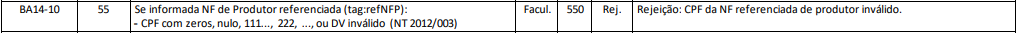 Rejeição 550: CPF da NF referenciada de produtor inválido (NF-e)