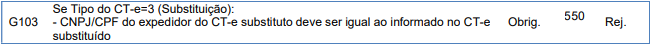 Rejeição 550: O CNPJ/CPF do expedidor do CT-e substituto deve ser igual ao informado no CT-e substituído (CT-e)