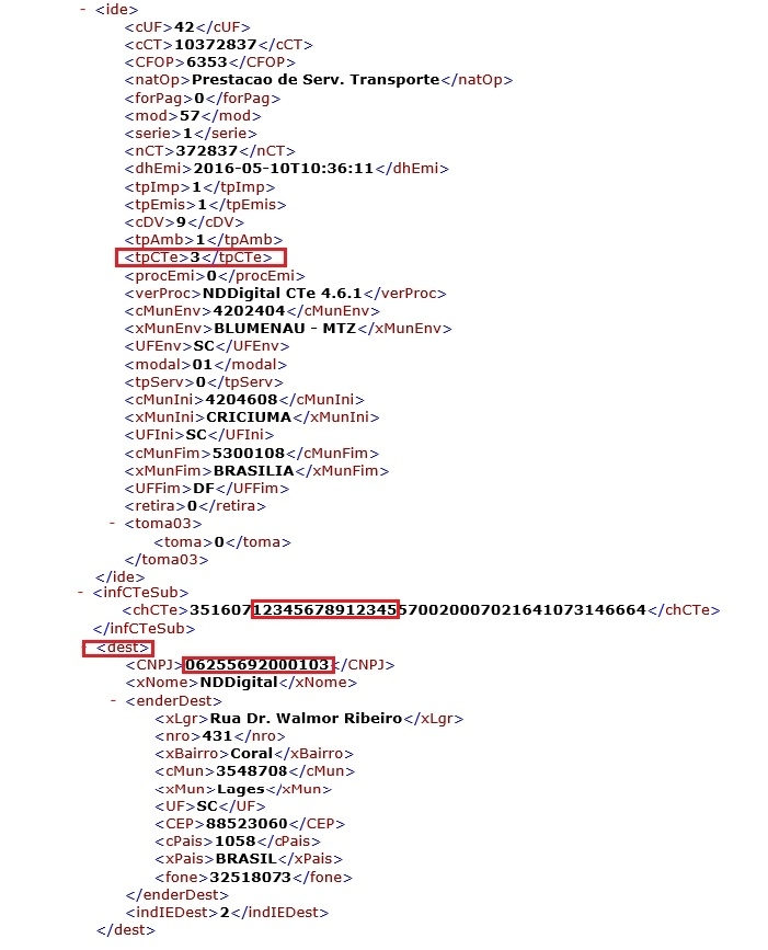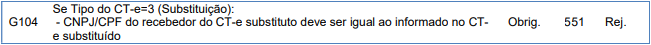 Rejeição 551: O CNPJ/CPF do recebedor do CT-e substituto deve ser igual ao informado no CT-e substituído (CT-e)