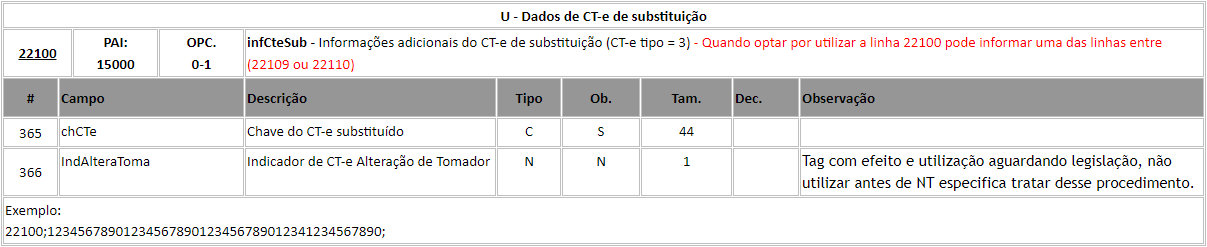 Para clientes que emitem o arquivo em TXT o campo infCteSub é referente a linha 22100, conforme podemos visualizar abaixo nos manuais da NDD.