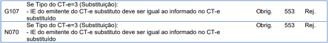 Rejeição 553: A IE do emitente do CT-e substituto deve ser igual ao informado no CT-e substituído (CT-e)