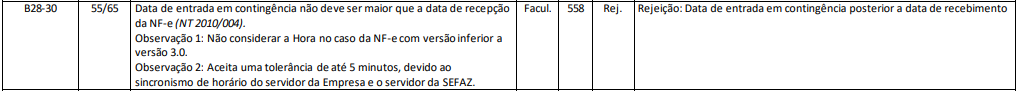 Rejeição 558: Data de entrada em contingência posterior a data de recebimento (NF-e)