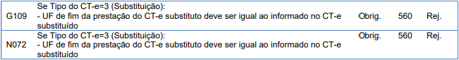Rejeição 560: A UF de fim da prestação deve ser igual ao informado no CT-e substituído (CT-e)