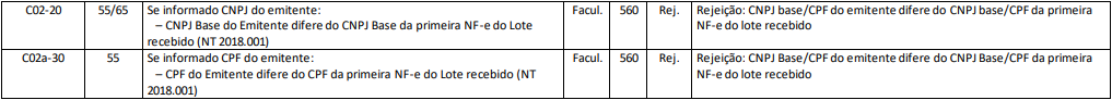 Rejeição 560: CNPJ base/CPF do emitente difere do CNPJ base/CPF da primeira NF-e do lote recebido (NF-e)