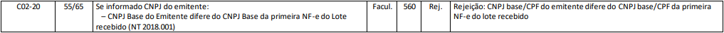 Rejeição 560: CNPJ base/CPF do emitente difere do CNPJ base/CPF da primeira NF-e do lote recebido (NFC-e)