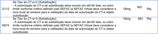 Rejeição 563: A substituição de um CT-e deve ocorrer no prazo máximo de 60 dias contados da data de autorização do CT-e objeto de Substituição (CT-e)