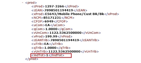 O campo (indTot) indica se o produto compõe ou não o somatório do Total: