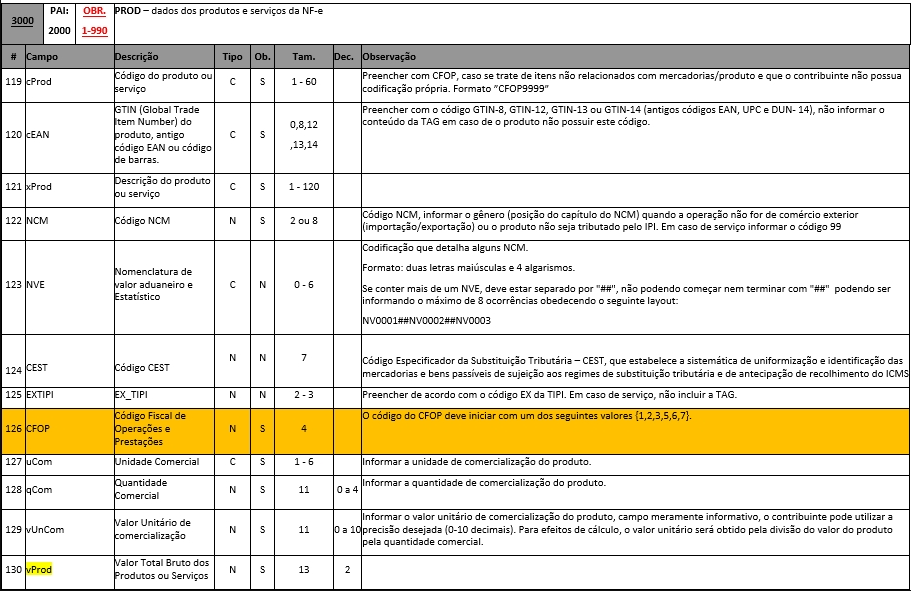 Fonte: ------> Anexo I - Leiaute e Regra de Validação - NF-e e NFC-e