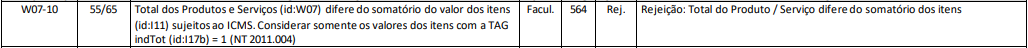 Rejeição 564: Total do Produto / Serviço difere do somatório dos itens (NF-e)