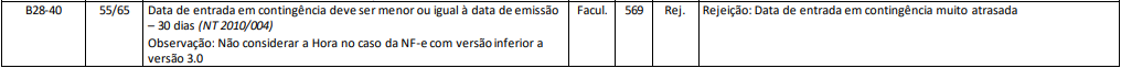 Deve-se verificar se a NF-e emitida está com a Data/Hora de Entrada em Contingência (dhCont) com um atraso maior que 30 dias da Data de Emissão (dhEmi), caso esteja acontecerá esta Rejeição.