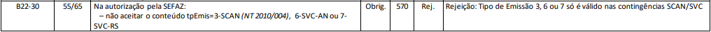 Rejeição 570: Tipo de Emissão 3, 6 ou 7 só é válido nas contingências SCAN/SVC (NFC-e)