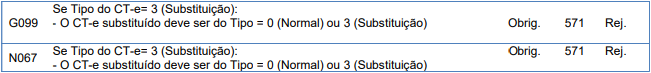 Rejeição 571: CT-e a ser substituído deve ter Tipo = 0 (normal) ou 3 (Substituição) (CT-e)