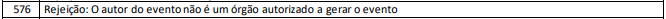 Rejeição 576: O autor do evento não é um órgão autorizado a gerar o evento (NF-e)