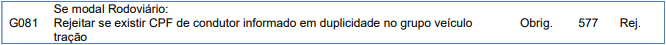 Rejeição 577: Duplicidade de condutor (MDF-e)