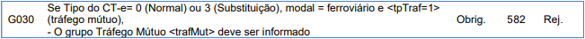 Rejeição 582: Grupo Tráfego Mútuo deve ser informado (CT-e)