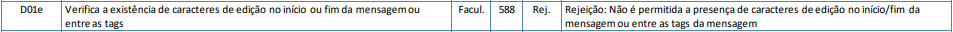 Essa rejeição ocorre quando existe a presença de caracteres de edição no início/fim da mensagem ou entre as tags da mensagem.