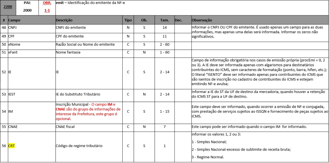 Fonte: ------> Anexo I - Leiaute e Regra de Validação - NF-e e NFC-e