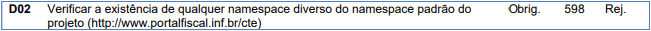Rejeição 598: Usar somente o namespace padrao do CT-e (CT-e)