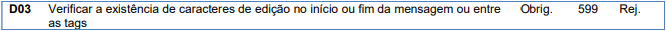 Essa rejeição ocorre quando não é permitida a presença de caracteres de edição no início/fim da mensagem ou entre as tags da mensagem.