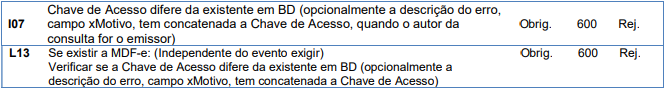 Rejeição 600: Chave de Acesso difere da existente em BD (MDF-e)
