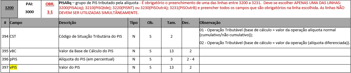 Para clientes que emitem o arquivo em TXT o campo ICMSTOT é referente a linha 4000 e o campo vPIS está localizado na 17 º linha, conforme podemos visualizar abaixo nos manuais da NDD Tech.