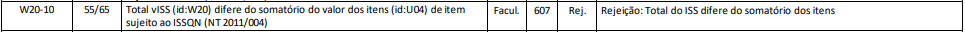 Essa rejeição ocorre quando o Total do ISS difere do somatório dos itens.