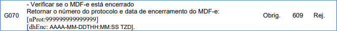 Rejeição 609: MDF-e já está encerrado na base de dados da SEFAZ (MDF-e)