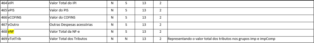 Fonte: ------> Anexo I - Leiaute e Regra de Validação - NF-e e NFC-e